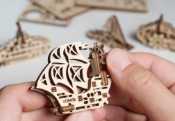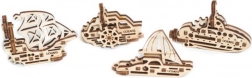 De set met vier mini-modellen van Ugears biedt ontspannen knutselen en speelse mechanische functies in zakformaat. Dankzij de lus maak je er gemakkelijk originele sleutelhangers of rugzakversieringen van. Elk vaartuig heeft zijn eigen eenvoudige tandwielmechaniek die plezier brengt tijdens korte pauzemomenten.