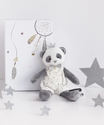 De cadeauset is een perfecte keuze voor een kraamcadeau of voor Kerstmis. Het onderhoud is eenvoudig – wassen op 30 °C en natuurlijk of op lage temperatuur drogen, zodat de panda zijn zachte aanraking lang behoudt.
