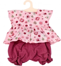 Kleed je pop elegant aan met een tunika en broekje in een zacht roze design met rozetten, die perfect passen op Miniland-poppen van 38 cm.