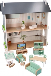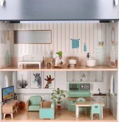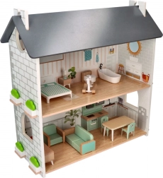 Het poppenhuis is ontworpen om creatief en fantasierijk spel aan te moedigen. Het bestaat uit twee verdiepingen waar kinderen hun eigen verhalen en scenario's kunnen creëren. Het houten materiaal garandeert een lange levensduur en duurzaamheid.