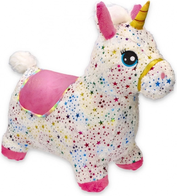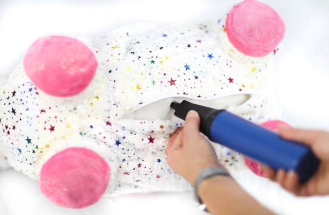 De springende eenhoorn is eenvoudig op te blazen met de meegeleverde handpomp. Binnen een mum van tijd klaar voor het spel – veerkrachtige kern, comfortabele grip en afmetingen 60 × 50 × 25 cm.