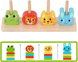 Dit schattige stapelspel brengt plezier en leren samen. Kinderen kunnen de kleurrijke onderdelen vrij combineren en hun favoriete dierfiguren maken of de meegeleverde voorbeeldkaartjes volgen. De hoogwaardige afwerking van FSC®-hout zorgt voor duurzaamheid en veiligheid bij dagelijks spelen.