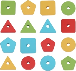 Stimuleer bij kinderen belangrijke vaardigheden: geduld, logisch denken en ruimtelijk inzicht. Dankzij de felle kleuren en verschillende vormen is het spel ideaal voor peuters vanaf 18 maanden. In de doos zit alles voor direct speelplezier – in totaal 27 onderdelen, inclusief een houten basis met pinnen en illustratiekaartjes.