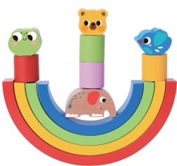 Deze veelzijdige houten stapelset biedt eindeloze speelmogelijkheden. Kinderen kunnen torens, bruggen en banen bouwen met gekleurde bogen, het evenwicht met diertjes uitproberen en hun concentratie trainen. De combinatie van regenboog-halve cirkels en figuurtjes stimuleert de creativiteit en leert kinderen logisch denken en ruimtelijke verbeelding.