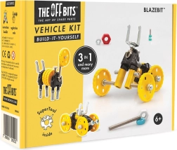 OFFBITS BlazeBit is een originele bouwset geïnspireerd door de re-use cultuur, die schroefjes, wieltjes en slimme connectors verandert in beweegbare modellen. Bouw BlazeBit, MotorBit, AnimalBit of bedenk je eigen machine – de fantasie kent geen grenzen.