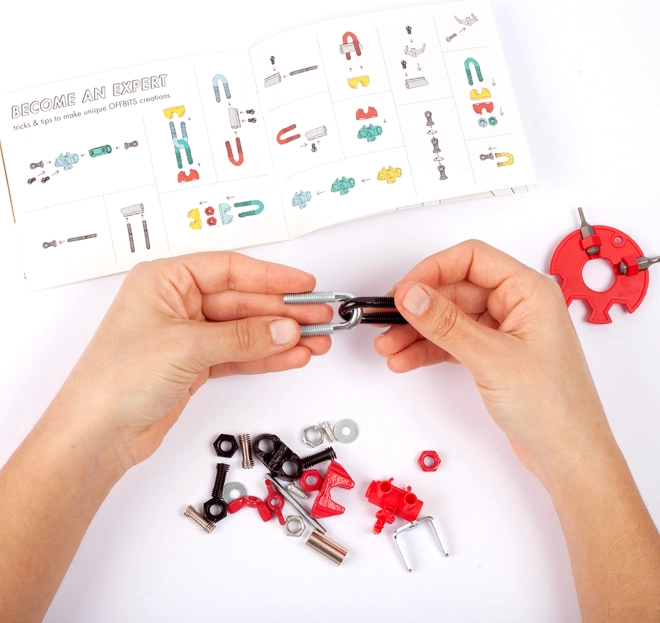 De THE OFFBITS ArtBit bouwset biedt een slimme combinatie van kleurrijke moeren, bouten en gevormde onderdelen, waarmee kinderen drie aanbevolen modellen en eigen creaties naar fantasie kunnen bouwen. De set ondersteunt leren binnen STEAM – wetenschap, technologie, engineering, kunst en wiskunde – en blijft tegelijkertijd speels en intuïtief.