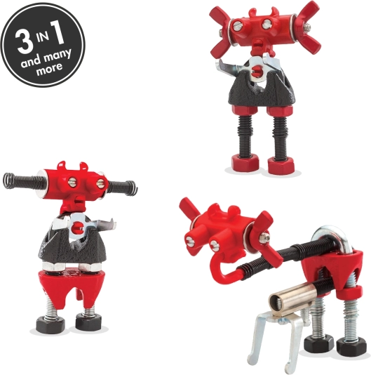 Onderdelen zijn creatief te combineren met karton, schroefjes en andere alledaagse voorwerpen, waardoor de bouwmogelijkheden praktisch onbeperkt zijn. Met het meegeleverde multifunctionele gereedschap verloopt de montage eenvoudig en veilig – ideaal voor beginnende bouwers.
