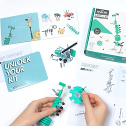 De set is ontworpen om fijne motoriek, ruimtelijk inzicht, probleemoplossend vermogen en creatief spel te stimuleren. Bovendien is hij compatibel met alledaagse materialen uit huis – voeg bijvoorbeeld karton, extra schroeven of andere kleinigheden toe en maak echt persoonlijke modellen.