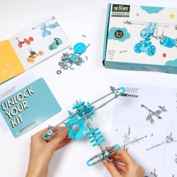 Verbind de onderdelen met karton, schroeven of andere alledaagse materialen en verleg de grenzen van je fantasie. Het spel ontwikkelt STEAM-vaardigheden (wetenschap, technologie, engineering, kunst, wiskunde) en versterkt ruimtelijk inzicht, probleemoplossend vermogen en fantasievol spel.