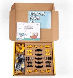 LoaderBit is een coole bulldozer voor je OFFBITS-robot. Dankzij slimme verbindingen, een set wielen en meer dan 150 onderdelen kun je het model eenvoudig naar eigen fantasie ombouwen. Maak 3 basisvarianten of bedenk je eigen unieke machines.