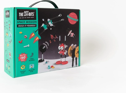 Ga op ontdekkingsreis door de galaxie met de The OffBits bouwset Ruimtemissie. In de doos vind je meer dan 150 kleurrijke moeren, schroeven en gevormde onderdelen voor het bouwen van drie hoofdmodellen en eindeloos veel eigen creaties. Gereedschap voor eenvoudig monteren is inbegrepen. De set ontwikkelt creativiteit, fijne motoriek, logisch denken en ondersteunt STEAM-vaardigheden (wetenschap, technologie, engineering, kunst, wiskunde).