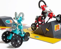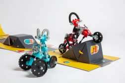 Ga op een snelheidsavontuur met de OffBits RaceBit bouwset! Stel je raceteams samen van moeren en bouten en verander de zero-waste verpakking in een racebaan.