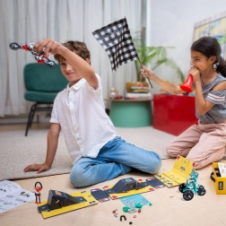 Een essentieel onderdeel van OffBits RaceBit is de compatibiliteit met alledaagse voorwerpen, wat kinderen de kans geeft hun eigen unieke uitvindingen te maken met gebruikelijke materialen. Bovendien verandert de verpakking van deze set in een speelse racebaan, wat het speelniveau verhoogt en kinderen urenlang vermaakt.