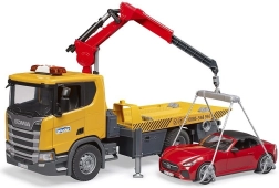 Takelwagens zijn onmisbare helpers, niet alleen bij het wegslepen van fout geparkeerde voertuigen, maar ook bij het transport van kapotte auto’s. De Scania Super 560R van Bruder biedt een gedetailleerde afwerking met tal van interactieve elementen: