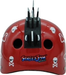 Stijlvolle rode Piraten helm voor fietsers, skateboarders en inline skaters. Biedt negen ventilatieopeningen en een schokbestendige versterkte polymeer buitenkant voor veiligheid.