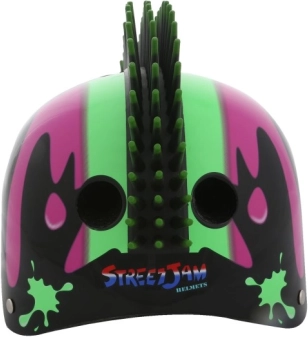Stijlvolle en veilige helm voor fietsers en skaters, gekenmerkt door een zwart design met een opvallende mohawk en luchtventilatieopeningen voor maximaal comfort.