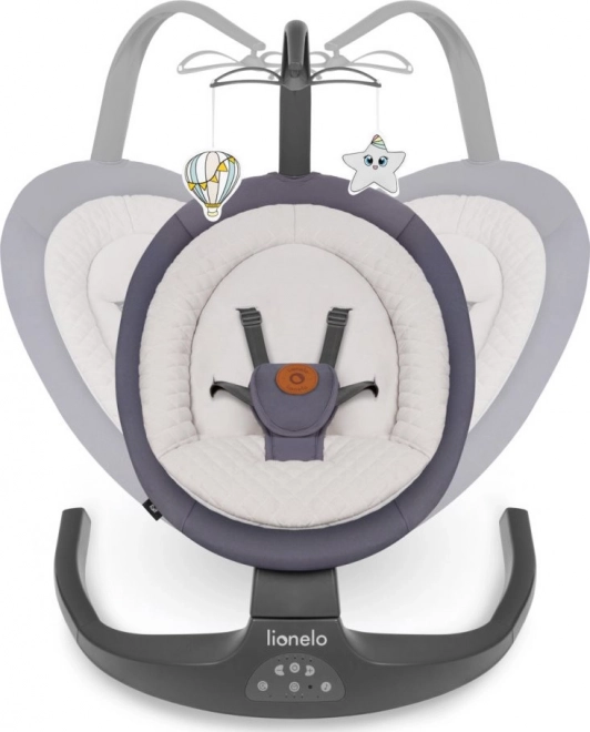 Het praktische babywipstoeltje 2-in-1 Ralf van het merk LIONELO biedt kinderen een comfortabele plek om te spelen, uit te rusten en te slapen. Dankzij de schommelfunctie met automatische bewegingsdetectie, 5 snelheden en een timer (8/15/30 min) komt je kleintje snel tot rust. Het wipstoeltje heeft een geprofileerde zitting met zacht kussentje, 12 melodieën met volumeregeling, afstandsbediening en een afneembare speelboog met twee speeltjes. Voor de veiligheid zorgen de 5-puntsgordel en anti-slip doppen.