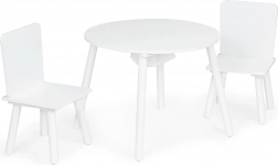 Creëer voor kinderen hun eigen hoekje om te knutselen, bouwen en snacken. Het ronde tafelblad is van duurzaam MDF met een glad, gemakkelijk afwasbaar oppervlak dat dagelijks gebruik aankan. De massieve poten van grenenhout zorgen voor stabiliteit, waardoor de set stevig en veilig is.