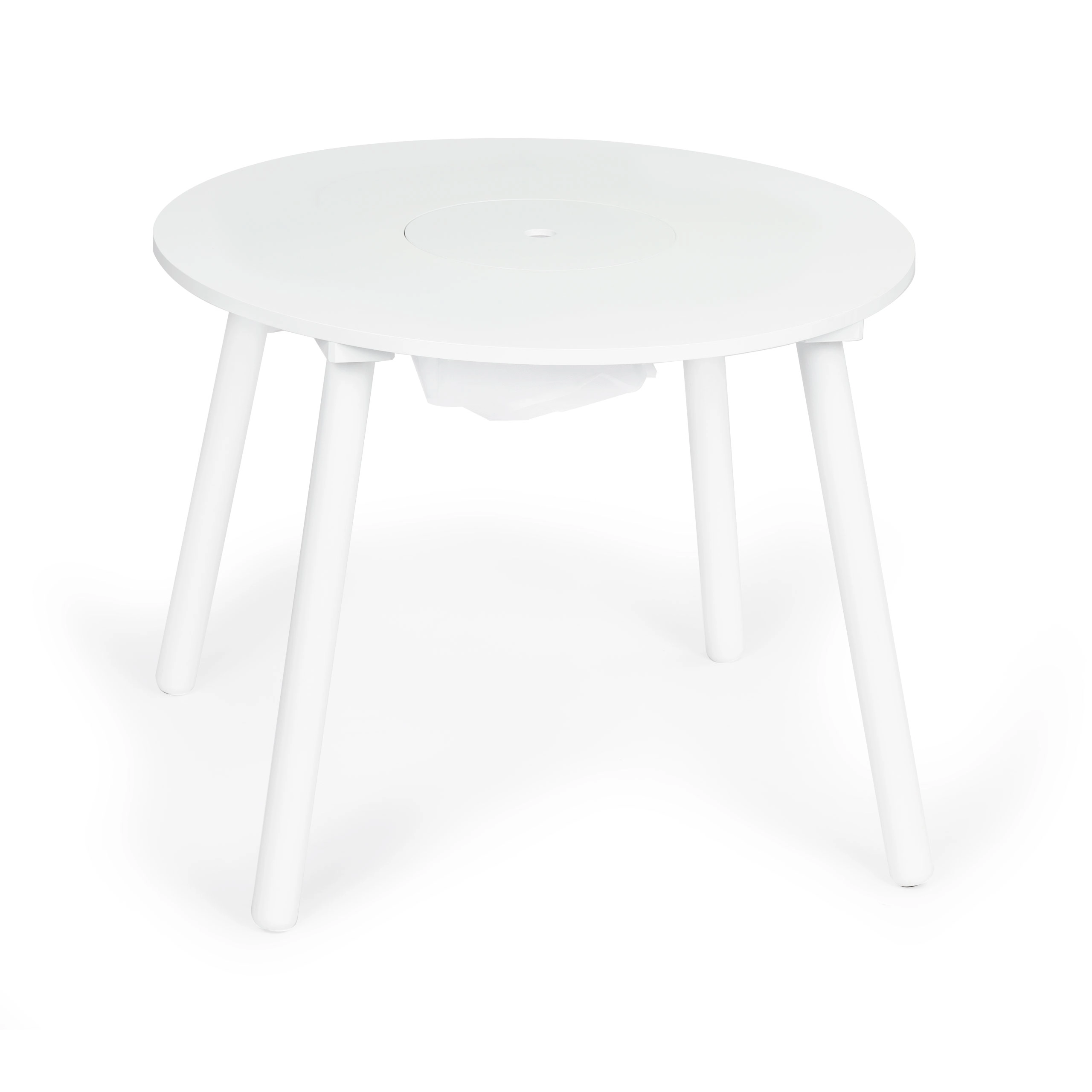 Het ruime ronde blad zonder scherpe hoeken biedt voldoende plek voor tekenen, constructies en tussendoortjes – veilig en overzichtelijk.
