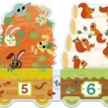 Deze omlijnde puzzel van het merk DJECO verandert leren in een vrolijke rit. De locomotief en negen wagons vormen een kleurrijke trein met verschillende aantallen dieren – zo koppelen kinderen spelenderwijs cijfers aan hoeveelheden en trainen ze hun aantal- en hoeveelheidsbegrip.