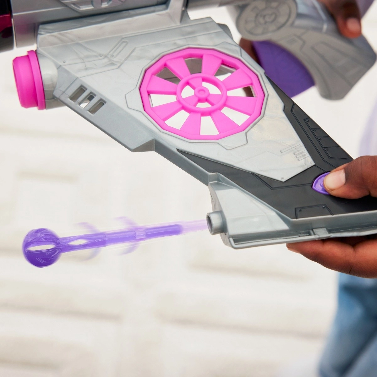 Door aan de hendel op de handgreep te trekken gaan de vleugels draaien en schakelt het toestel over naar actiemodus. Bij obstakels laad je eenvoudig 2 raketwerpers en lanceer je projectielen met de knoppen op de vleugels. De speelgoedset stimuleert verbeelding, motorische vaardigheden en biedt een authentieke beleving van de geliefde film.