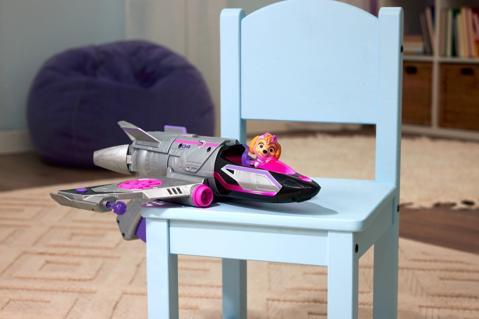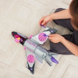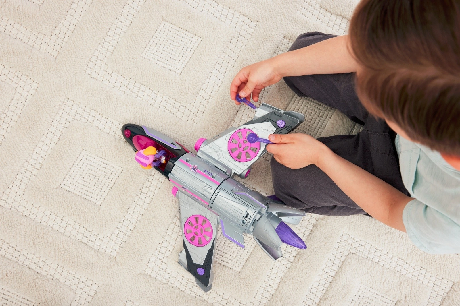 Beleef actie als op het grote scherm met Skye’s interactieve vliegtuig uit PAW Patrol: De Machtige Film. Zodra het figuurtje in de cockpit zit, lichten delen van het vliegtuig en Skye op, en starten muziek en geluidseffecten zodat kinderen direct op missie kunnen. Dankzij de ergonomische handgreep kun je het vliegtuig omhoog, omlaag en zijwaarts kantelen en extra geluidsreacties activeren.