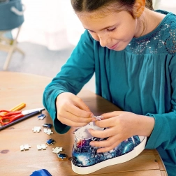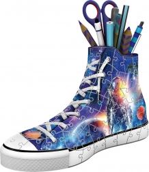 108 stevige stukjes met kosmische graphics vormen samen de aantrekkelijke vorm van een sneaker. Een geweldige uitdaging voor jonge bouwers en beginnende 3D-puzzelfans.