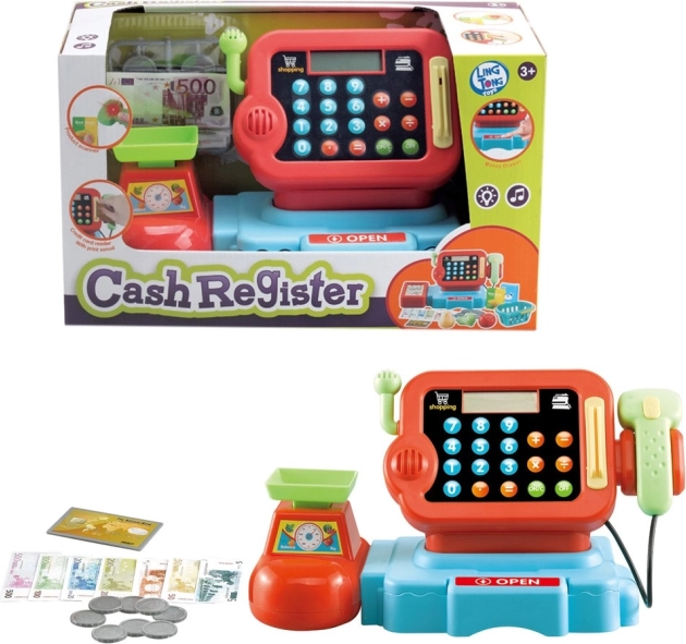 Kassa met weegschaal en scanner is het ideale speelgoed voor kinderen vanaf 3 jaar, dat een realistische winkelervaring biedt met een digitale scanner en weegschaal.