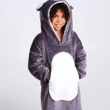 Schattige en praktische hoodie-deken Cozy Noxxiez koala houdt kinderen van 7 tot 12 jaar warm, zowel binnen als buiten. Hij combineert zacht flanel aan de buitenkant en warme sherpa-fleece aan de binnenkant, heeft een grote capuchon met koalamotief en een extra grote kangoeroezak aan de voorkant voor de handen. Ideaal voor bankhangen, spelen, kamperen en voor koele avonden in de tuin.
