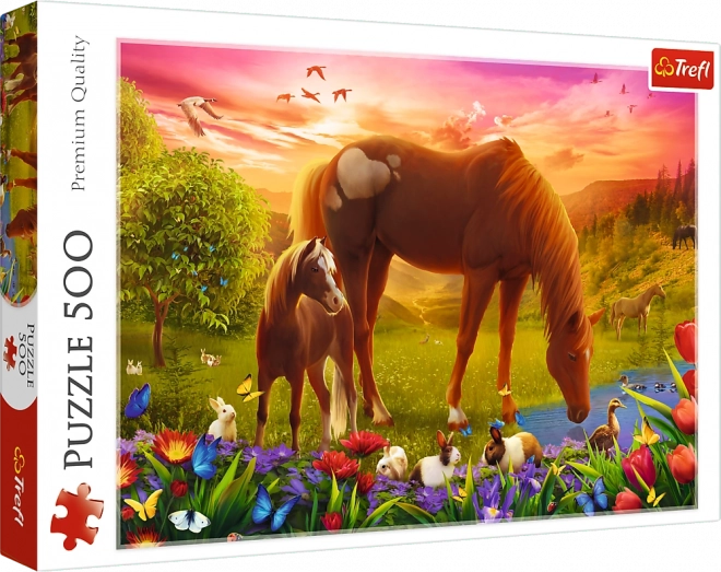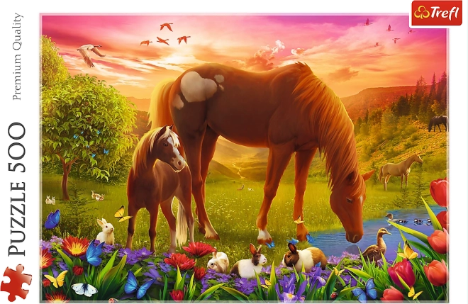 Puzzel 500 stukjes Paarden in de weide