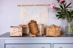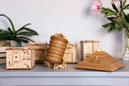 Een elegant houten lichaam met gedetailleerde gravure zorgt voor duurzaamheid, een mooie uitstraling en een prettig gevoel tijdens het oplossen.