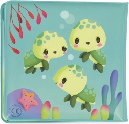 Vermaak je kind in bad met het zachte prentenboekje van Janod over schildpadden. Dit originele boekje biedt een acht pagina’s durend avontuur dat kinderen meeneemt naar een betoverende zeewereld. Kijk hoe de magische diertjes tevoorschijn komen zodra het boekje onder water wordt gedompeld en weer verdwijnen zodra het droog is.