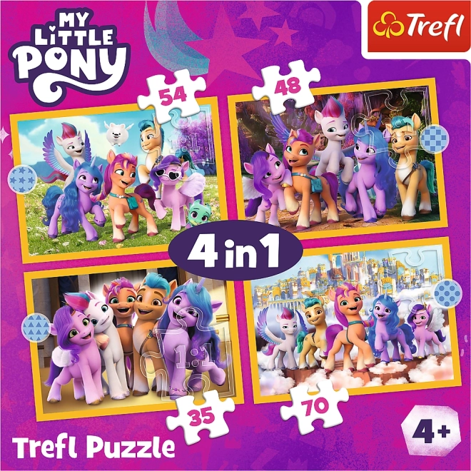 Kleurrijke set 4-in-1 puzzels met MY LITTLE PONY-motieven die kleine puzzelliefhebbers zal verrassen. Vier aparte afbeeldingen van 285 × 205 mm met een verschillend aantal stukjes (35, 48, 54, 70) bieden plezier en een geleidelijke uitdaging. Gemaakt in Polen van milieuvriendelijke materialen, geschikt voor kinderen vanaf 4 jaar.