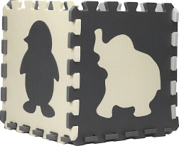 Deze grijs‑crème schuimpuzzelmat tovert de vloer om tot een knusse en veilige speelplek. Uitneembare middenstukken met dieren en geometrische vormen stimuleren de fijne motoriek en leren spelenderwijs. Dankzij de dikte van 0,9 cm dempt hij schokken en geluid en isoleert tegen kou.
