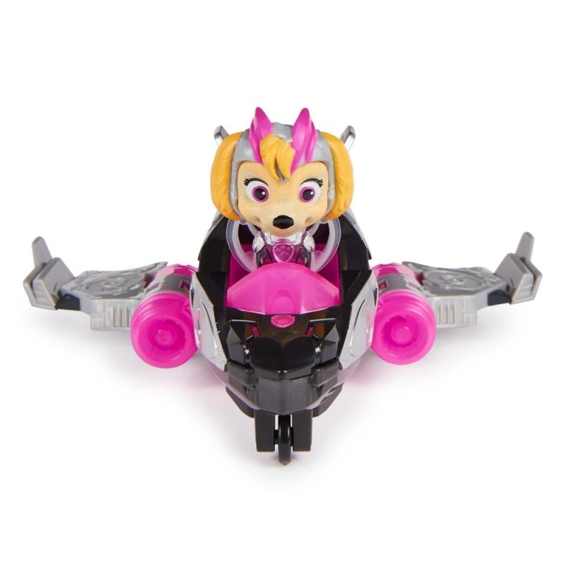 Skye draagt een roze filmuniform met transparante details en een stijlvolle helm. Spelen met deze set stimuleert de fijne motoriek, rollenspel en de verbeelding. Voor nog meer plezier combineer je met andere voertuigen, figuren en sets van PAW Patrol (apart verkrijgbaar).