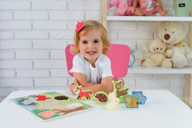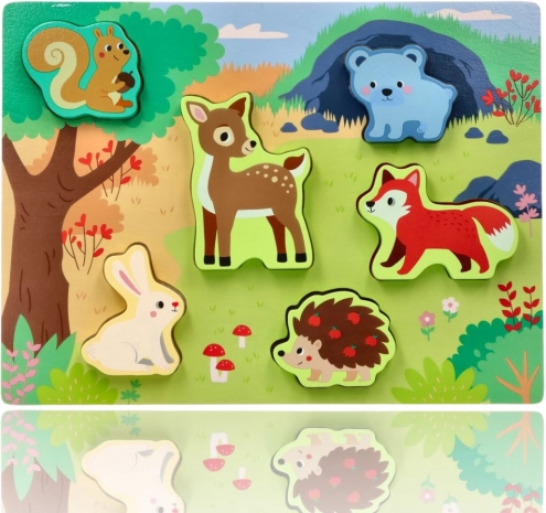 Dankzij het duurzame gelakte oppervlak en de gladde randen is het speelgoed geschikt voor dagelijks gebruik. Het ondersteunt oog-handcoördinatie, geduld en concentratie, terwijl kinderen op een natuurlijke manier bosdieren leren kennen.