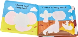 Het boekje heeft een compact formaat van 15 × 15 cm, 6 makkelijk om te slaan pagina's en is gemaakt van zacht, afwasbaar plastic voor veilig spelen in bad. Perfect als cadeautje voor kleine dinofans en ter ondersteuning van de fijne motoriek en het visuele waarnemen.