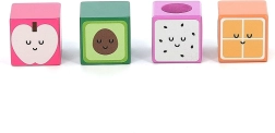 Deze originele set van 11 houten geluidsblokjes met vrolijke fruitmotieven biedt kinderen veel prikkels om te ontdekken. Elk blokje is anders – bij schudden of tikken produceert het unieke geluiden die de zintuiglijke ontwikkeling en nieuwsgierigheid stimuleren. Dankzij het compacte formaat liggen de blokjes goed in kleine handjes en zijn ze ideaal voor eerste bouwpogingen, sorteren en vrij spel.