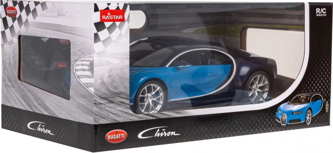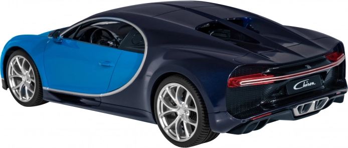 Twee blauwtinten, een gedetailleerd interieur en te openen deuren benadrukken het authentieke design van de BUGATTI Chiron. LED-lampen versterken de realistische rijervaring.