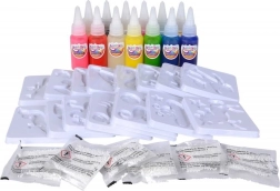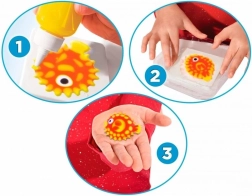 Vul de mal met de gekleurde gel, dompel hem in water en binnen enkele seconden ontstaat er een uniek figuurtje, klaar om mee te spelen.