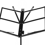 Deze geschilderde metalen muziekstandaard is uitgerust met een driepoot basis en verstelbare hoogte, wat gebruik in zowel staande als zittende positie mogelijk maakt. De standaard kan zelfs op een tafel worden geplaatst wanneer ingesteld op de laagste hoogte. Opklapbaar blad past zich gemakkelijk aan je behoeften aan, terwijl de verstelbare hoek het dichtvallen van bladmuziek voorkomt. Geschikt voor zowel professionals als amateurs.