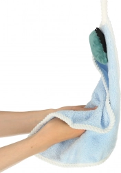 De mix van polyester en nylon voelt prettig zacht aan, neemt goed op en droogt snel, zodat de handdoek al snel weer klaar is voor gebruik. De praktische lus maakt ophangen aan een haakje mogelijk, precies op kinderhoogte. Onderhoud is eenvoudig – machinewas op 30 °C met soortgelijke kleuren.