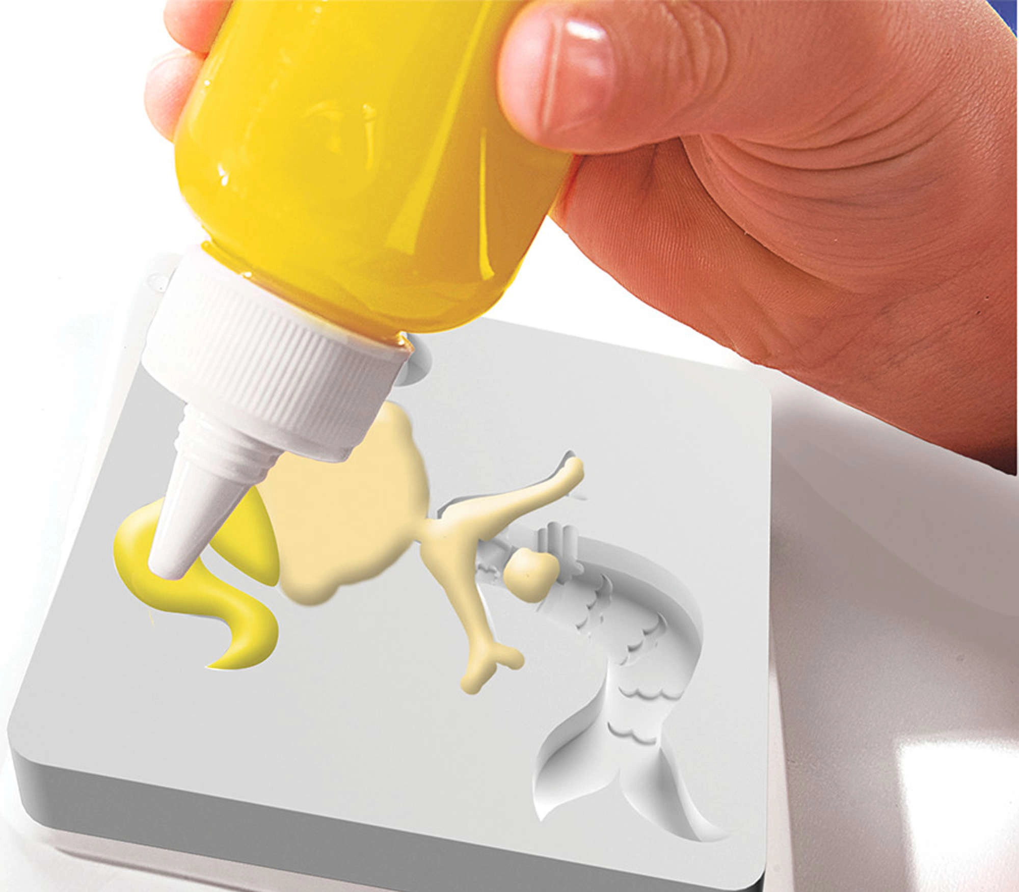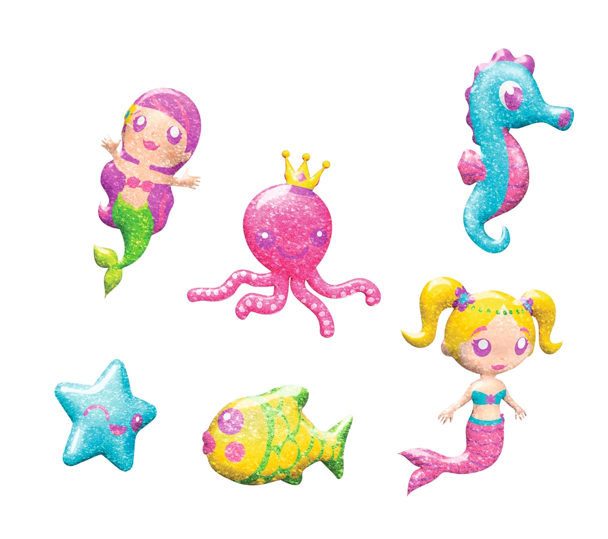 Applicatieflesjes met smalle tuit maken inkleuren en fijne details eenvoudig. Glitter geeft de zeeminnenfiguren een betoverende glans.