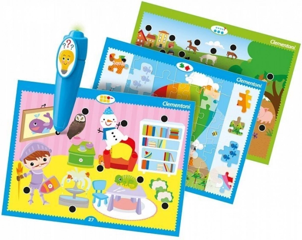 Het educatieve spel Mijn interactieve pen van Clementoni is ontworpen om vaardigheden en bewustzijn van de omgeving te ontwikkelen bij kinderen van 3-6 jaar. Het biedt meer dan 1000 quizzen en 120 educatieve activiteiten die een breed scala aan thema's voor kleuters bestrijken.