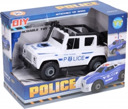 De schroefbare politiejeep is een ideale speelgoedset voor kinderen die van auto’s en bouwen houden. Met het meegeleverde gereedschap kunnen jonge monteurs het voertuig gemakkelijk uit elkaar halen en weer in elkaar zetten, waarmee zij hun vaardigheid en logisch denken trainen. Vrijlopende wielen zorgen voor soepel rijplezier.