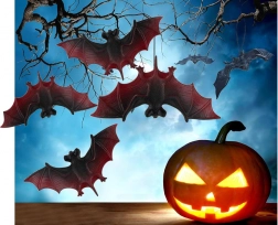 Vier gedetailleerde vleermuizen met getextureerde vleugels geven je interieur en exterieur die perfecte mysterieuze touch. De decoraties zijn licht, eenvoudig op te hangen en werken geweldig in bomen, voor ramen, op planken en in combinatie met spinnenwebben en pompoenen. Ideaal voor Halloween, themafeesten en fothoekjes.