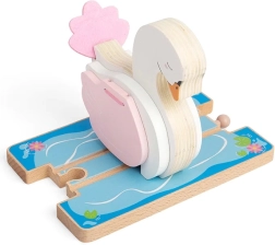 Klap de roze vleugels van de zwaan omhoog en verander haar in een tunnel. Kinderen zullen genieten van dit eenvoudige maar magische mechanische element dat elke rit tot leven brengt.