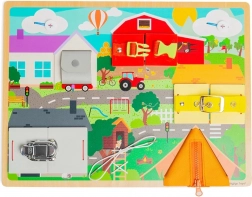 Het vastklikken van een gesp, openritsen van een rits of openen van een slot bevordert oog-handcoördinatie, concentratie en geduld.