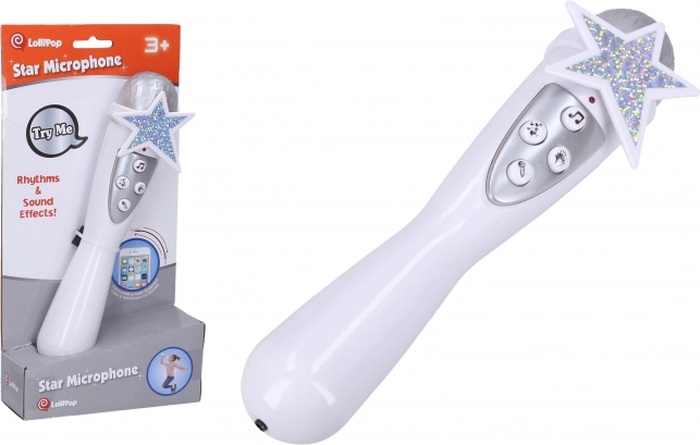 Microfoon Ster met een grootte van 23 cm brengt plezier met originele geluidseffecten. Perfect voor kleine zangers en muziekliefhebbers.