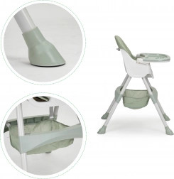 De stoel is voorzien van een stevige constructie met metalen poten en antislip onderzetters, waardoor hij veilig en stabiel is. De mogelijkheid om de hoogte aan te passen door de poten en rugleuning te verwijderen, maakt deze stoel een geweldige metgezel, niet alleen tijdens het eten, maar ook tijdens spel- en knutselactiviteiten.